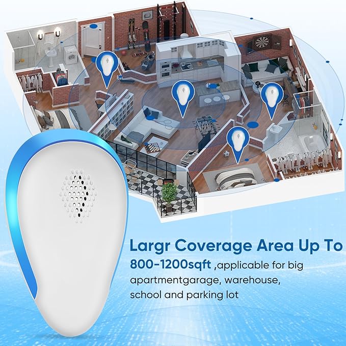 - 🐀🚫【Durable Material】 Made of high-quality durable materials to ensure the spider repellent indoor device works stably in a variety of environments, prolonging its service life, and can be used indoors with confidence. Since solid walls can weaken the effect of ultrasonic waves, we recommend using 1 unit for each common room with pest problems.