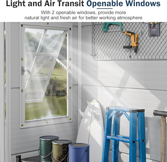 - Durable and Stable Resin Shed:It looks like a classic wood shed, but it doesn’t need to be repainted or repaired since it will never rot, rust, or peel–unlike wood.The shed is also easy to modify. So, if you want to paint the walls or drill holes, you can make the inside of the shed work to fit your needs exactly