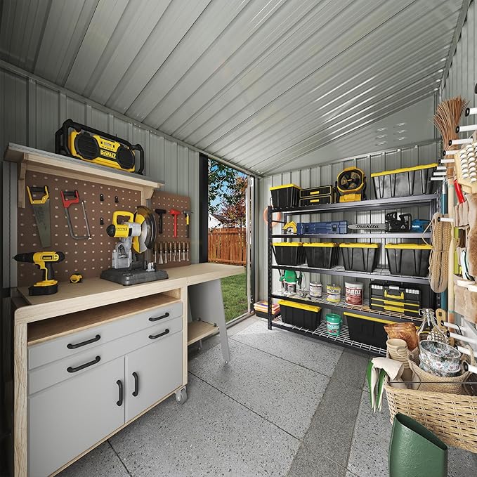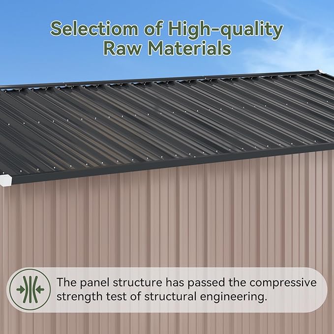 - Galvanized Steel Panels for Superior Durability: Crafted from high-strength galvanized steel, these panels are built to withstand the test of time. They effectively resist rust, ensuring long-lasting durability even in harsh outdoor conditions. Meticulously engineered for structural integrity, they offer exceptional compressive strength, providing a stable and secure storage solution for garden sheds, generator storage, and more
