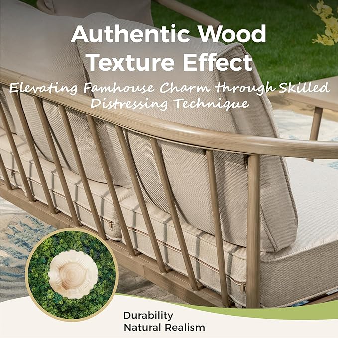 - 【Masterful Craftsmanship, Authentic Texture】 The sofa's surface undergoes a time - honored hand - rubbed staining process, executed by seasoned artisans. This technique replicates the look of real wood grain, paying homage to traditional craftsmanship and exuding an authentic farmhouse aesthetic