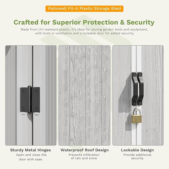 - Durable & Weather-Resistant Construction - Made from high-quality, weatherproof plastic, this shed reliably resists rain, UV damage, and temperature changes. Its reinforced roof and strong floor provide lasting stability and support for heavy items without warping or cracking.