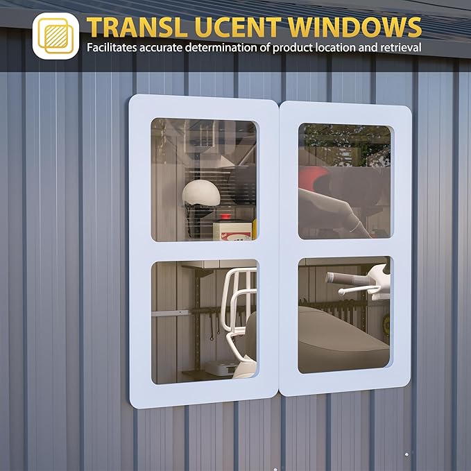 - Ventilated & Natural Light: Four built-in vents ensure airflow and reduce moisture, while the included side window brings in natural light—creating a bright and well-ventilated storage environment.