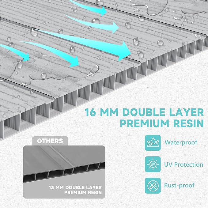 - Heavy-Duty Resin Construction – Crafted from high-quality resin, the shed offers exceptional durability and weather resistance, standing strong against UV rays, moisture, and temperature swings.