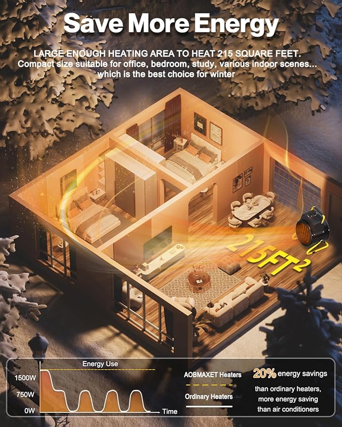 - Powerful Outdoor Patio Heater: The 1500 watt garage heater efficiently warms areas up to 215 square feet, boasting a 10% higher thermal efficiency and 20% more energy efficiency compared to other electric greenhouse heater. Enjoy effective heating while saving energy