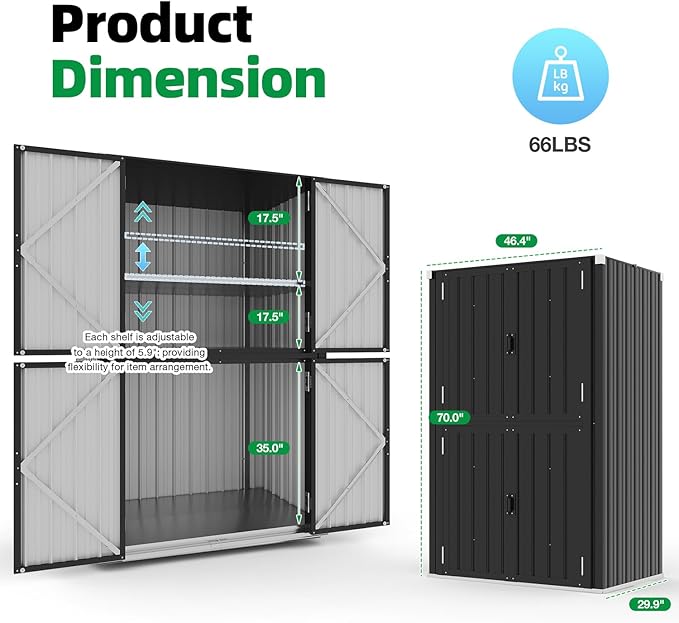 - Weatherproof Outdoor Cabinet: Fully sealed for outdoor storage waterproof protection and made from high-quality metal, weighing 95 lbs and capable of withstanding strong winds. It combines the benefits of traditional wooden and resin sheds, making it suitable for both indoor and outdoor use.
